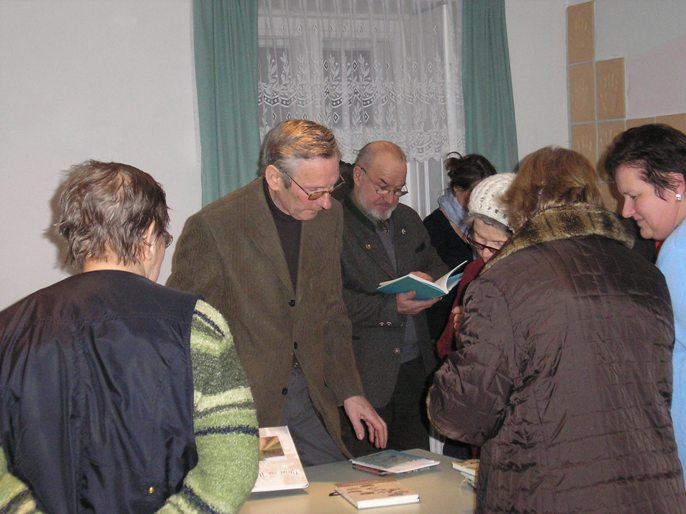 Nach dem Vortrag schmökern die Leute beim Büchertisch in seinen Werken.